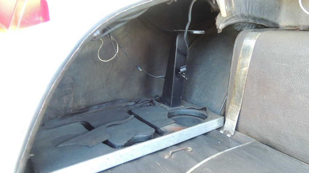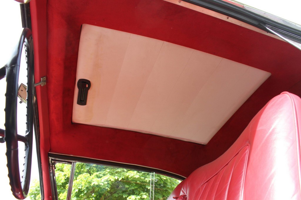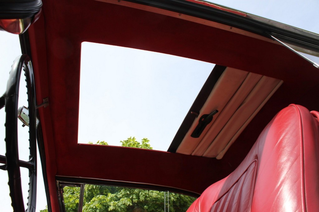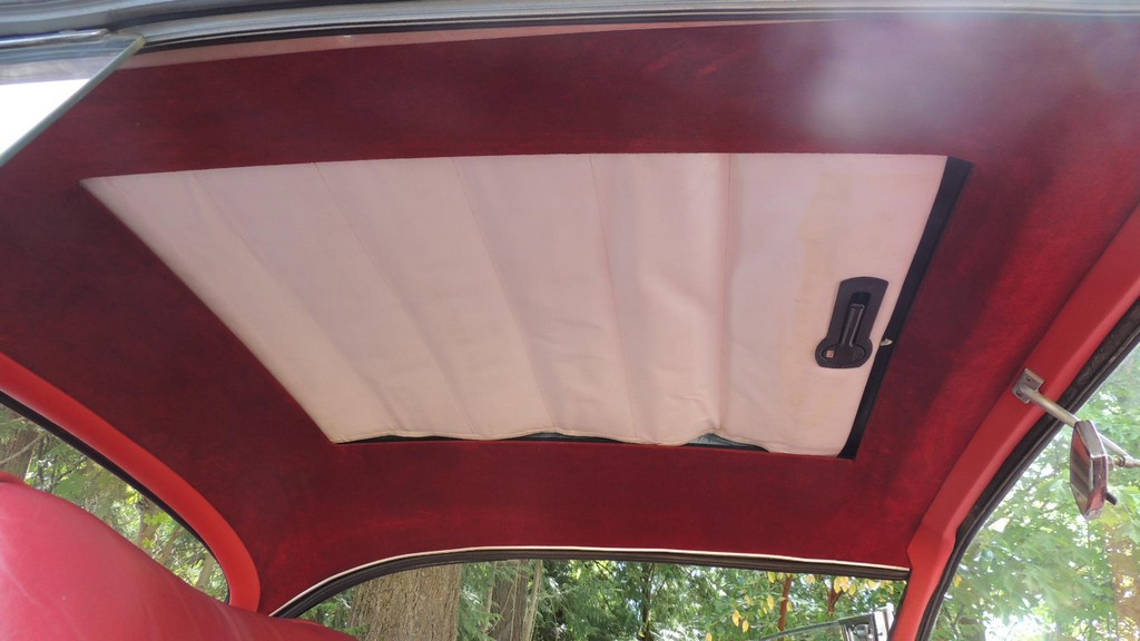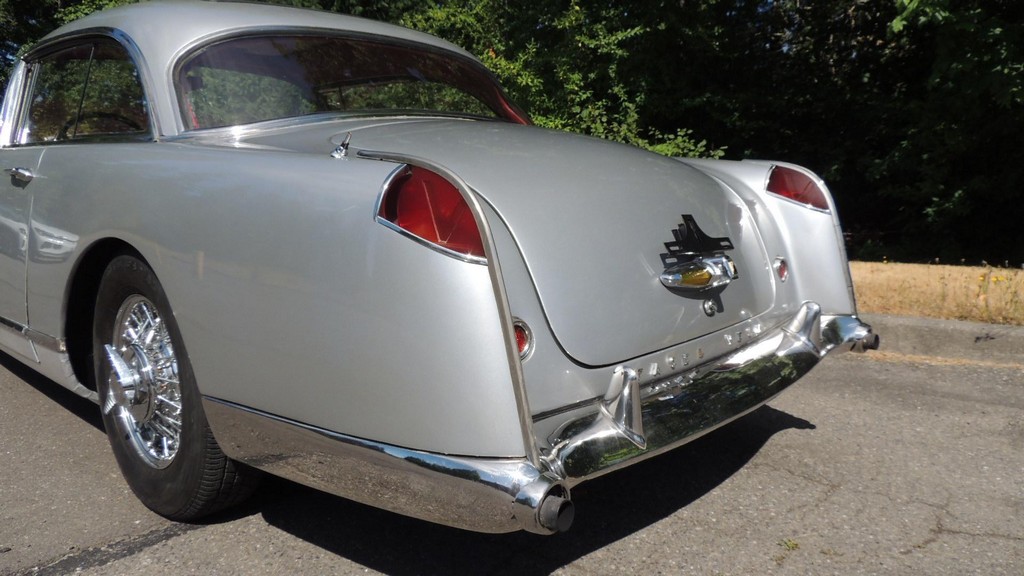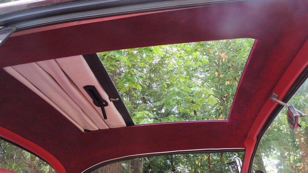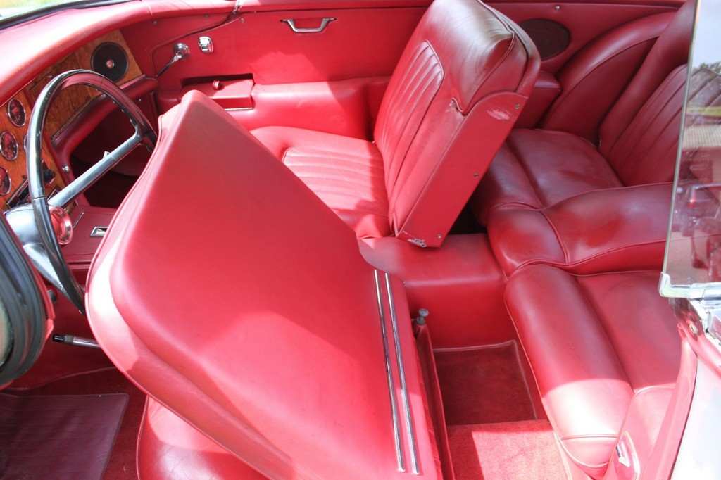 Finished in elegant gray, the coupe’s dramatic presence is defined by its wrap-around windshield, pillarless side glass, and sculpted body lines that embody mid-century European design. Knock-off wire wheels add a sporting touch, while the retractable sunroof enhances the grand touring experience with open-air versatility. Classic drum brakes reflect the car’s period-correct engineering.