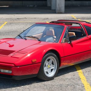 The exterior is finished in Roman Red, the car’s original color, and was refinished during the restoration to a show-quality standard. Panel fit is excellent throughout, with clean body lines and proper alignment of trim, bumpers, and emblems. Chrome and brightwork remain in excellent condition, with polished details contributing to the striking visual presentation. The black folding soft top is clean, taut, and free of fade or wear.