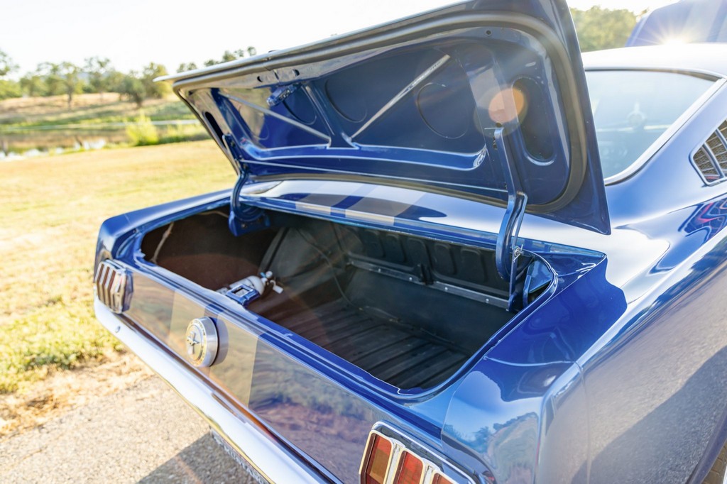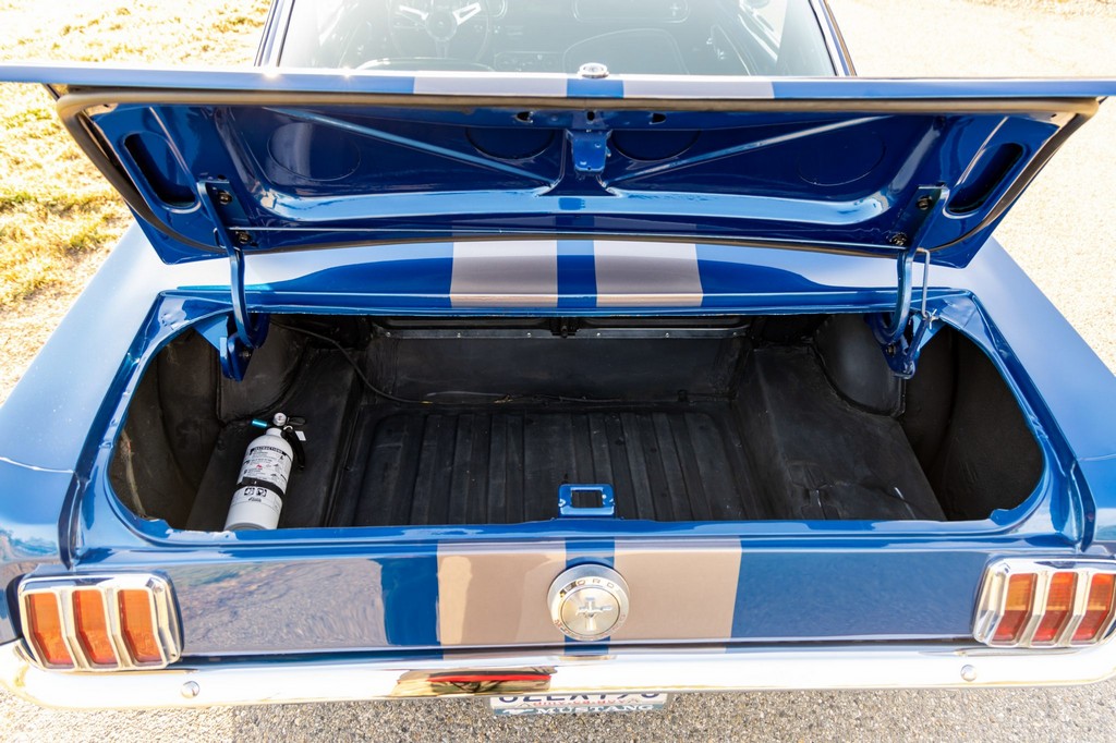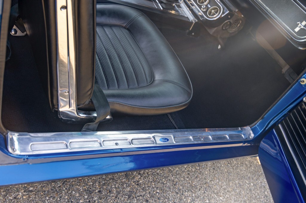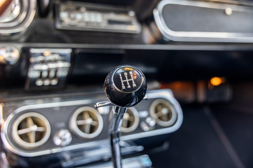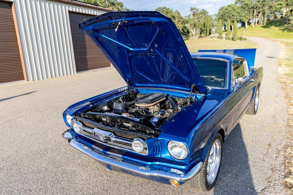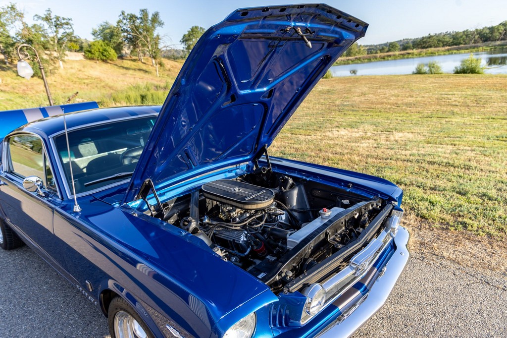 This A-code 1966 Ford Mustang Fastback is powered by a rebuilt 289ci V8 fitted with performance upgrades including Edelbrock aluminum heads, a four-barrel carburetor, and an Edelbrock intake manifold. Power is sent to the rear wheels through a Tremec T-5 five-speed manual transmission, offering a modernized and engaging driving experience. Additional enhancements include an uprated fuel pump, aluminum radiator, and front sway bar for improved cooling and handling.