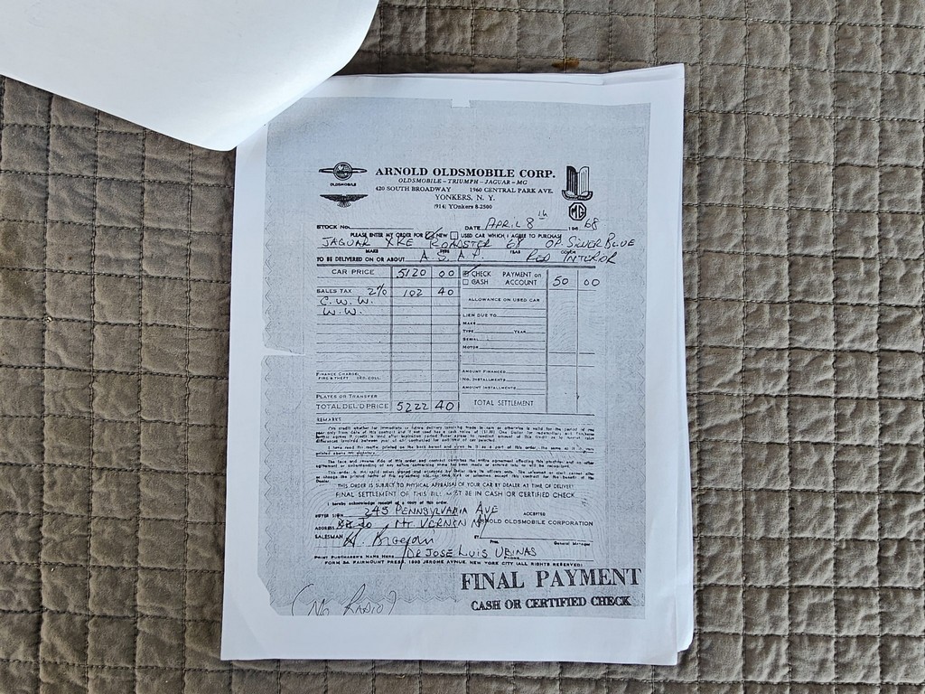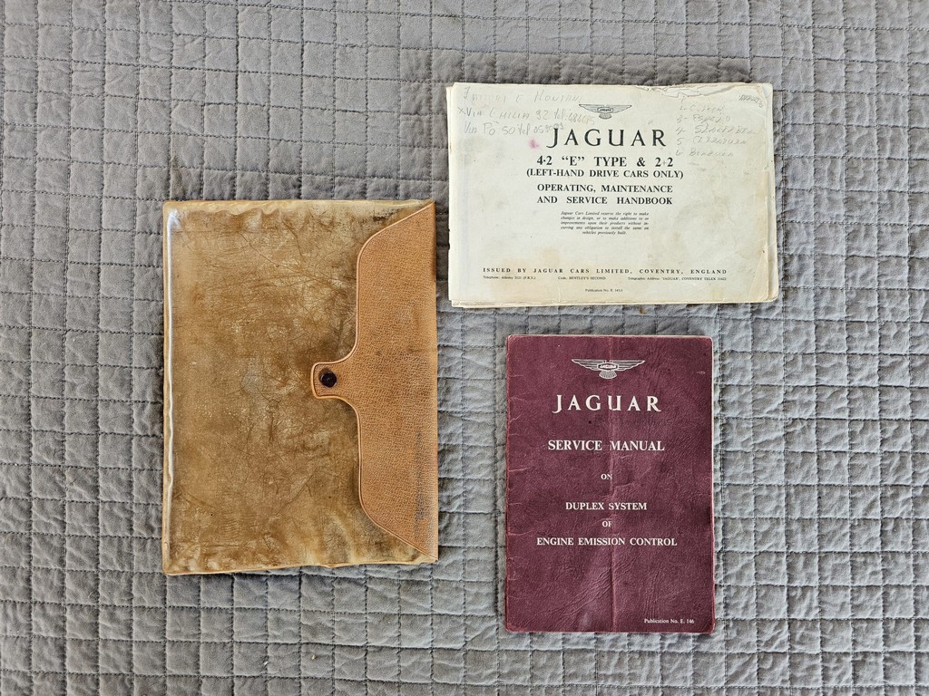 Details such as a Moto-Lita wood-rimmed steering wheel, stainless-steel exhaust, and classic 15-inch knock-off wire wheels enhance both the driving experience and visual appeal. Offered with an extensive documentation package—including the original window sticker, purchase paperwork, Jaguar Heritage Trust certificate, owner’s manuals, service records, spare parts, a car cover, and a clean California title—this one-owner XKE is a well-sorted, collector-grade example ready to be enjoyed.