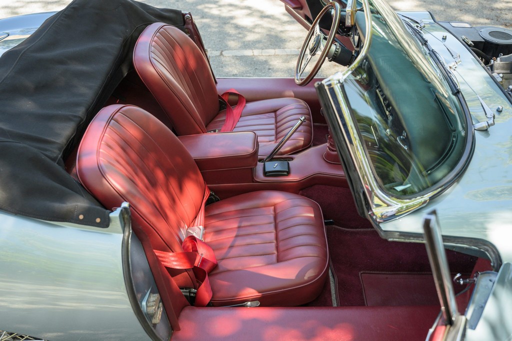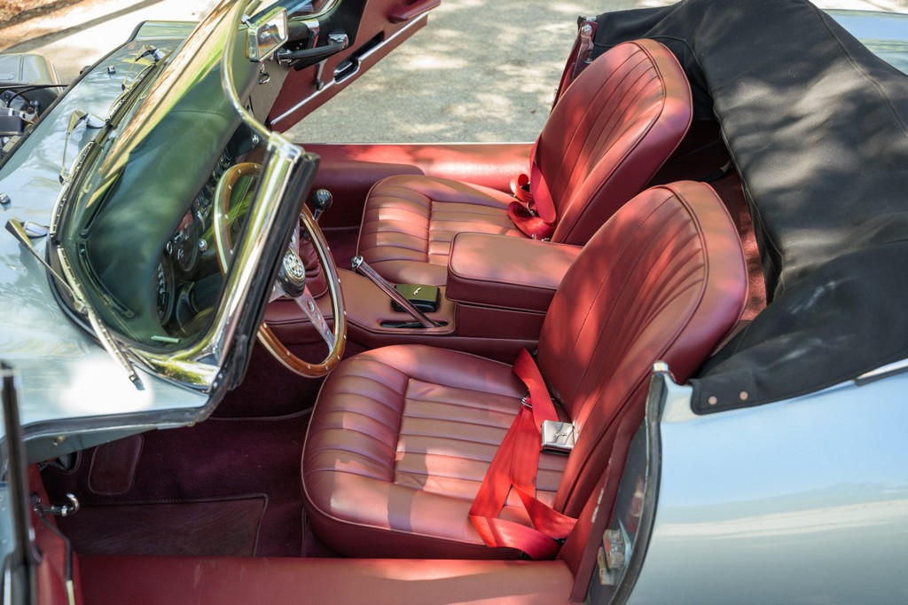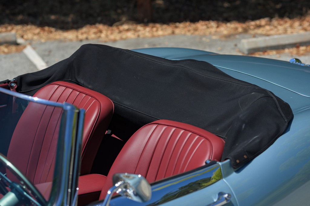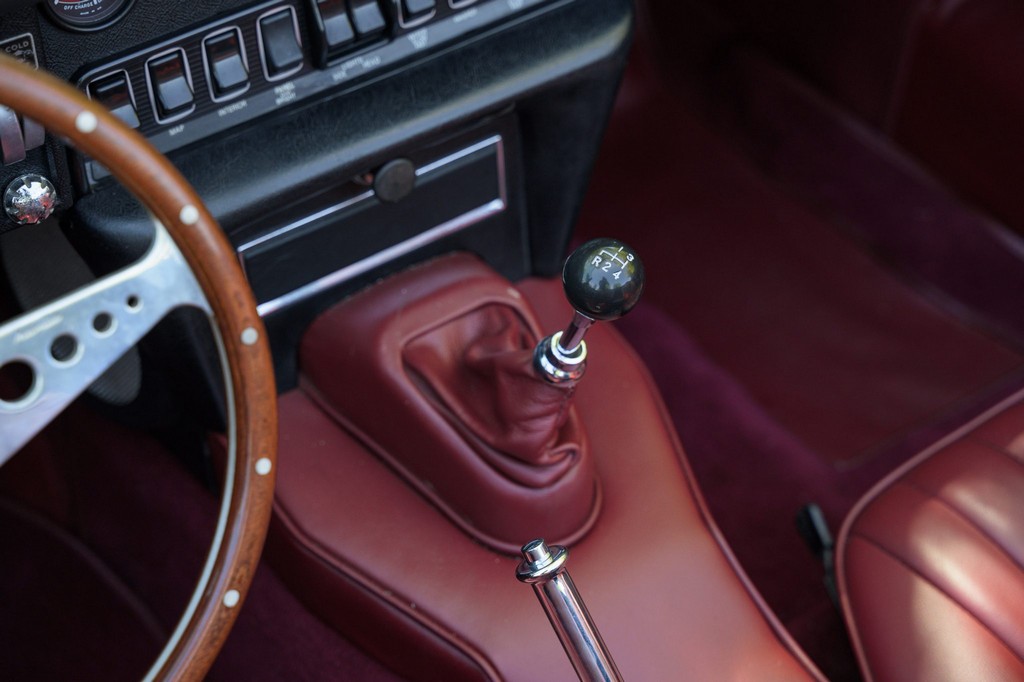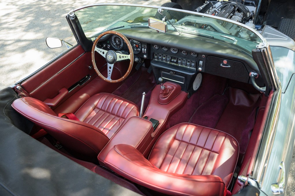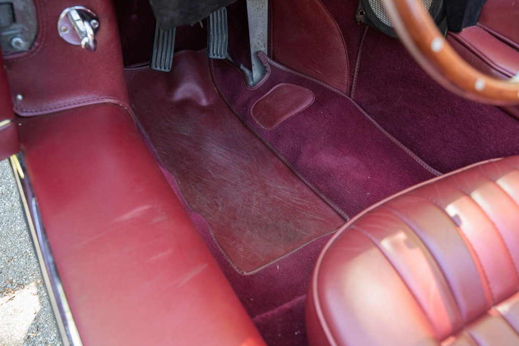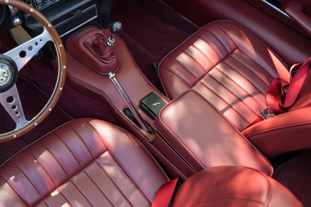 Power comes from the legendary 4.2-liter inline-six, which has been freshened along with the suspension and braking systems to ensure the car drives as beautifully as it looks. A new black vinyl soft top was installed as part of the restoration, completing the open-top experience. Paired with a four-speed manual transmission, the XKE delivers the smooth, torque-rich performance and engaging driving character that defined Jaguar’s golden era.