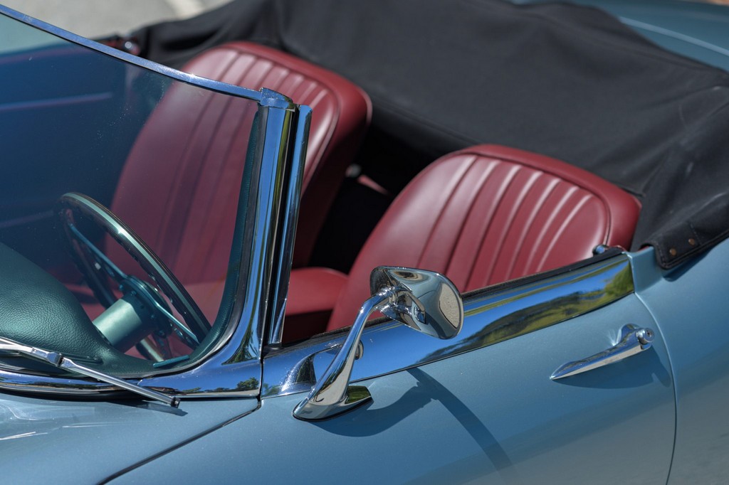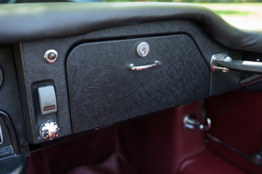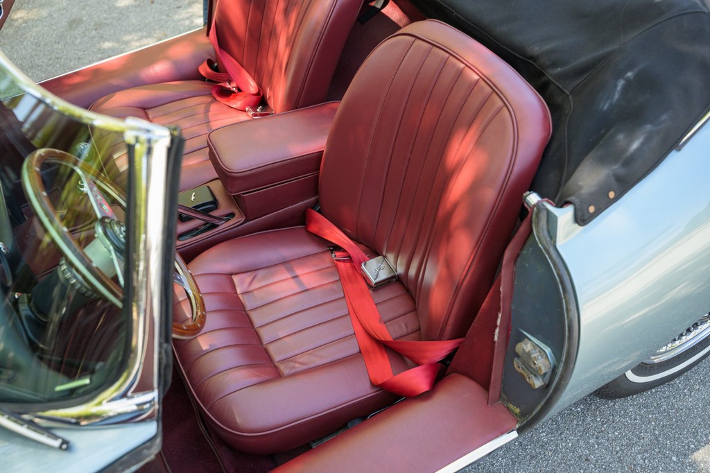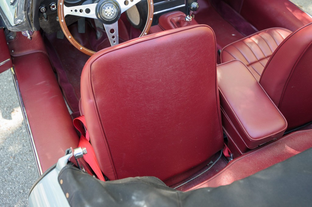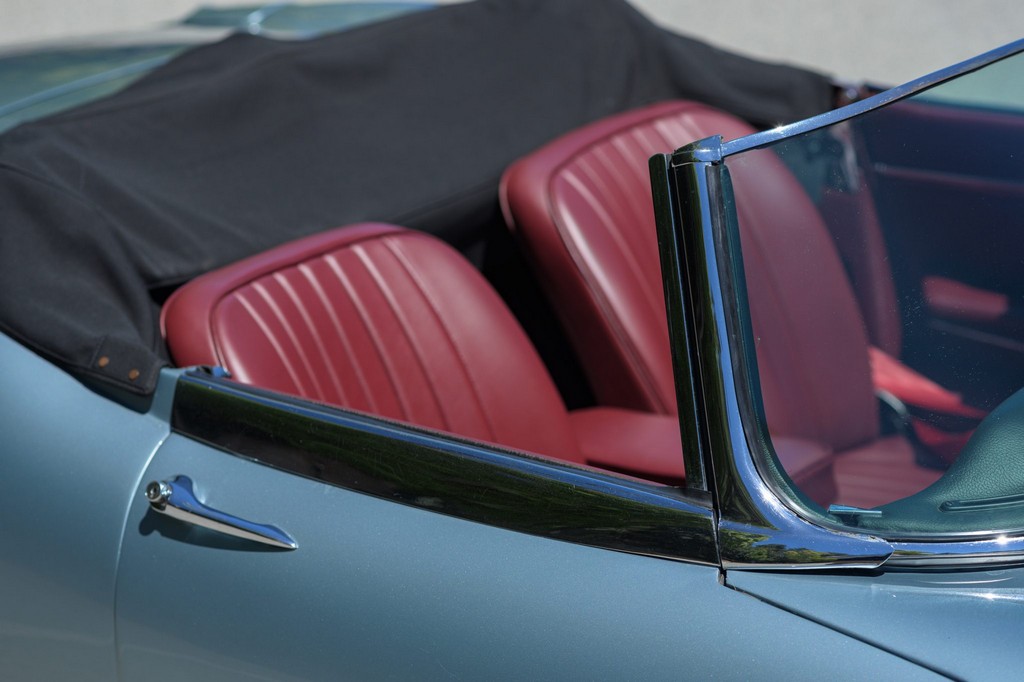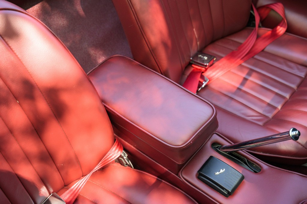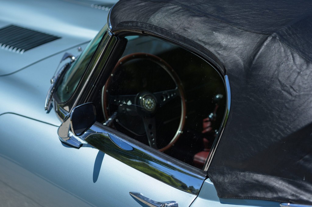 Power comes from the legendary 4.2-liter inline-six, which has been freshened along with the suspension and braking systems to ensure the car drives as beautifully as it looks. A new black vinyl soft top was installed as part of the restoration, completing the open-top experience. Paired with a four-speed manual transmission, the XKE delivers the smooth, torque-rich performance and engaging driving character that defined Jaguar’s golden era.