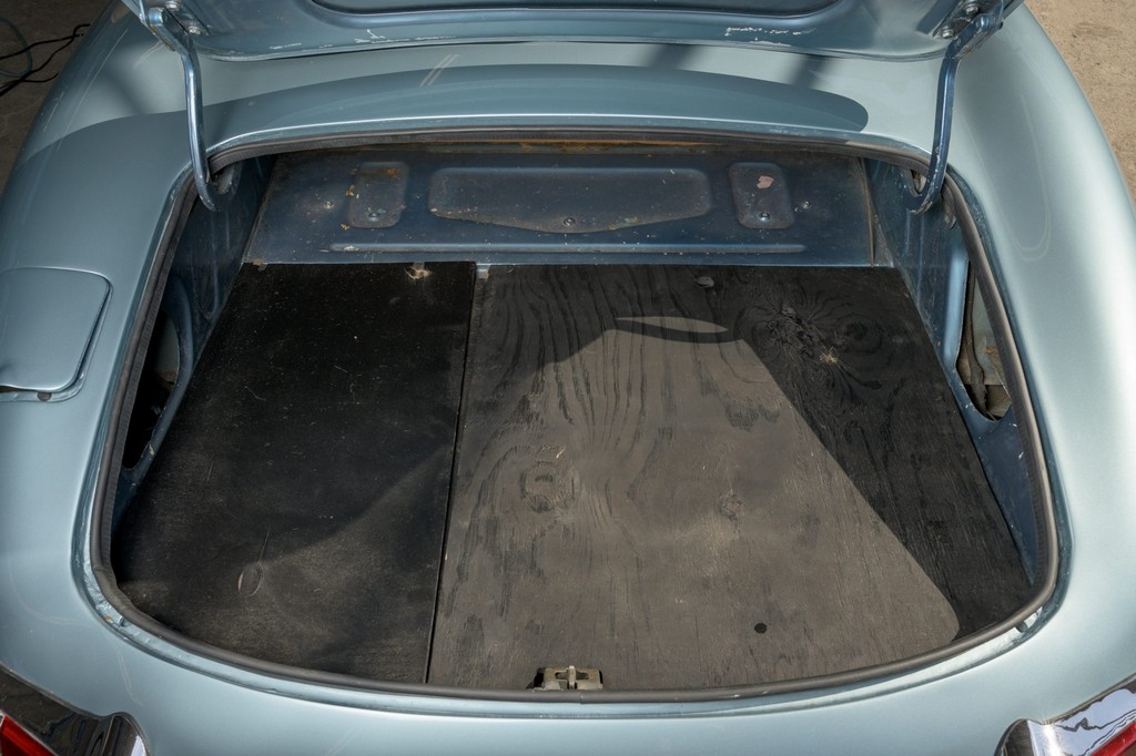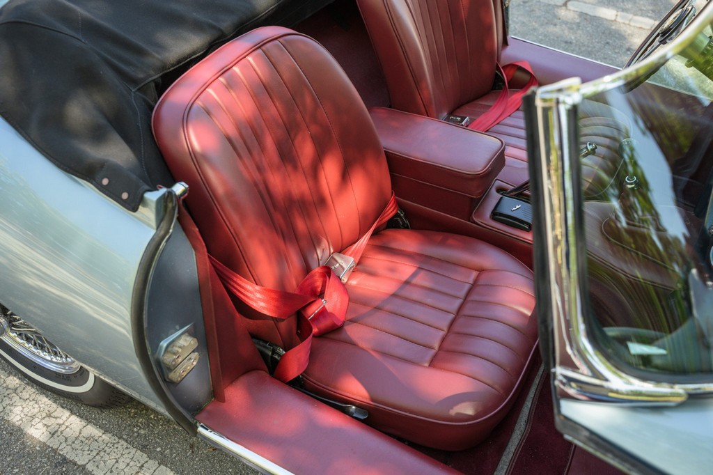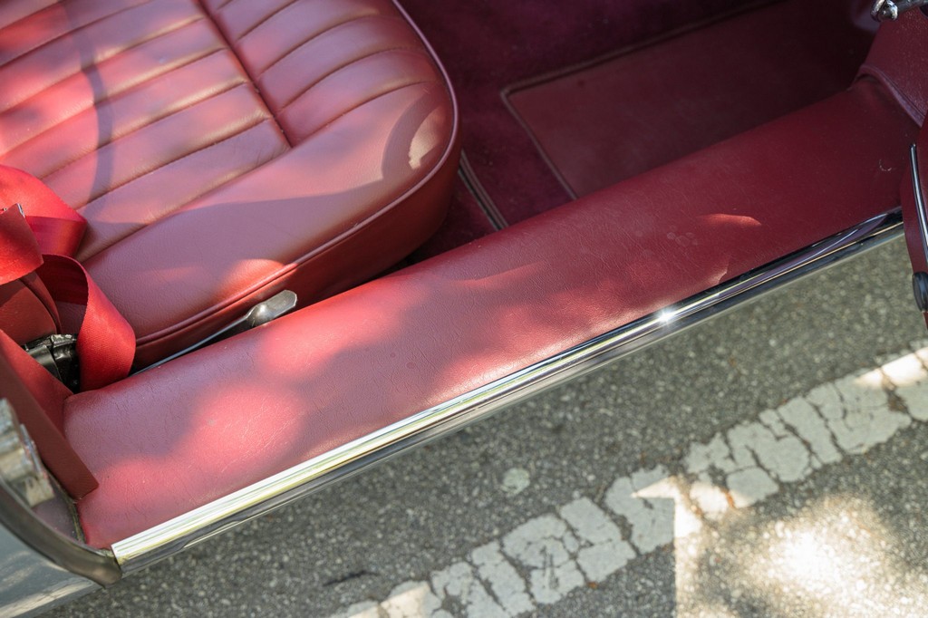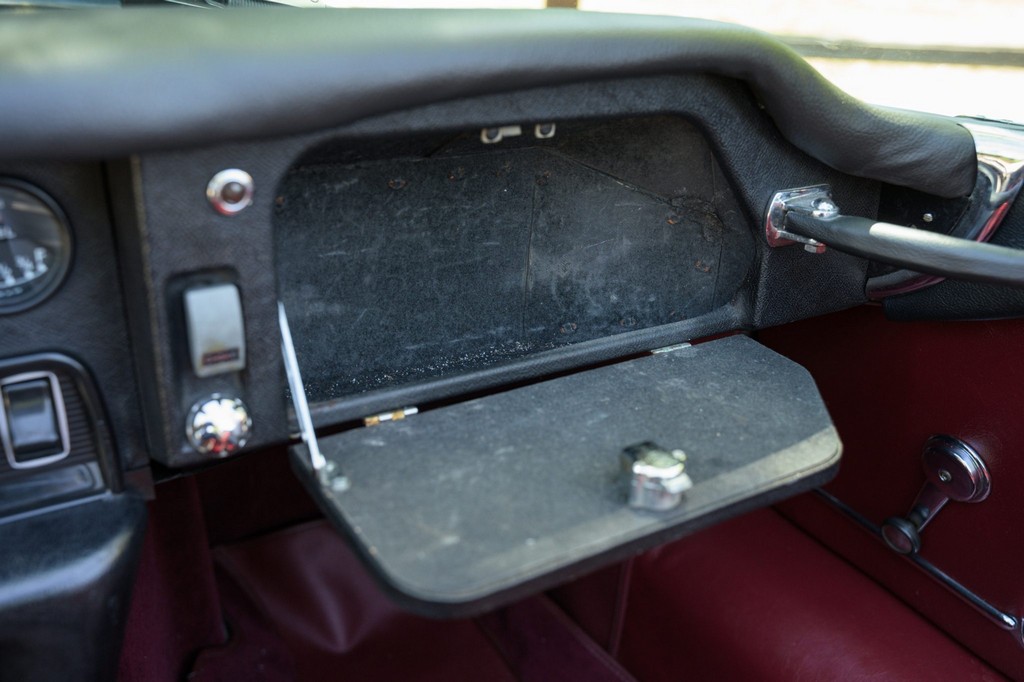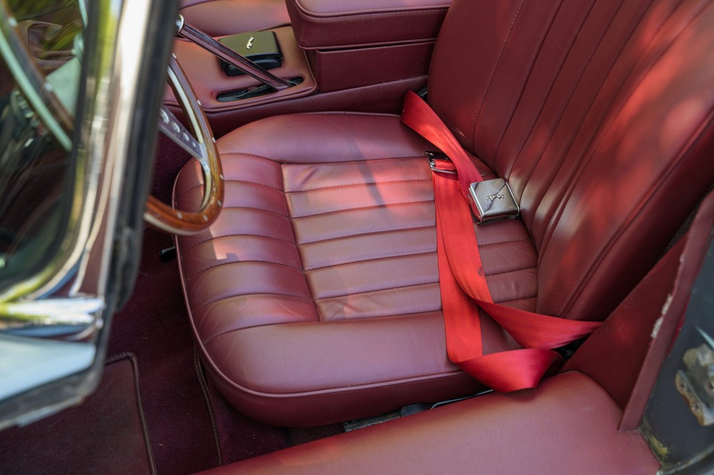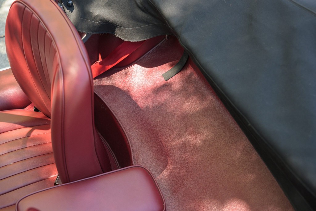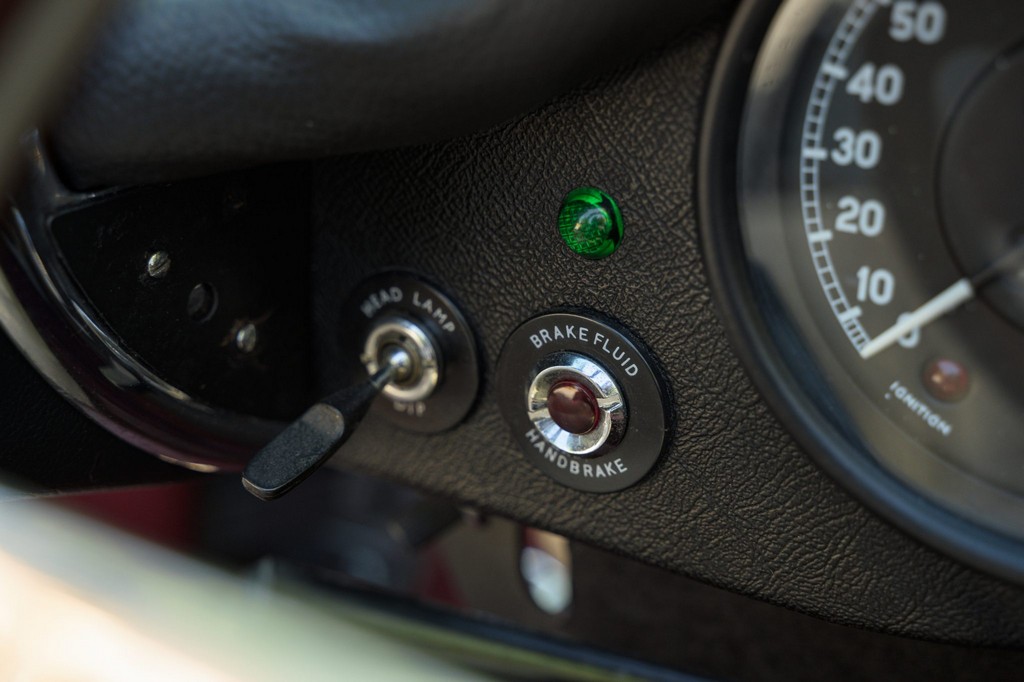 Power comes from the legendary 4.2-liter inline-six, which has been freshened along with the suspension and braking systems to ensure the car drives as beautifully as it looks. A new black vinyl soft top was installed as part of the restoration, completing the open-top experience. Paired with a four-speed manual transmission, the XKE delivers the smooth, torque-rich performance and engaging driving character that defined Jaguar’s golden era.