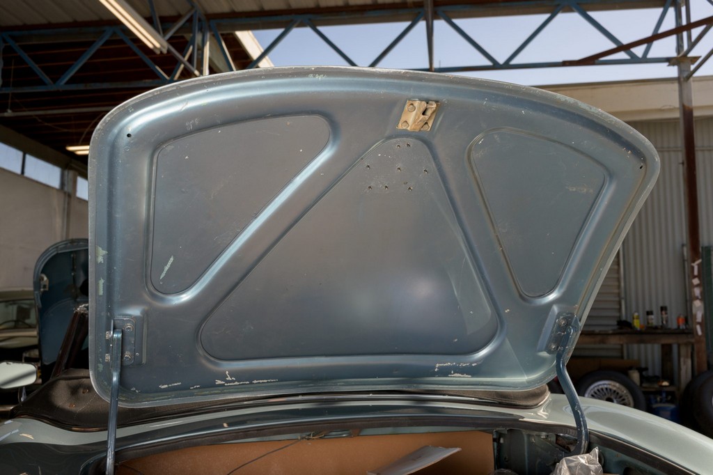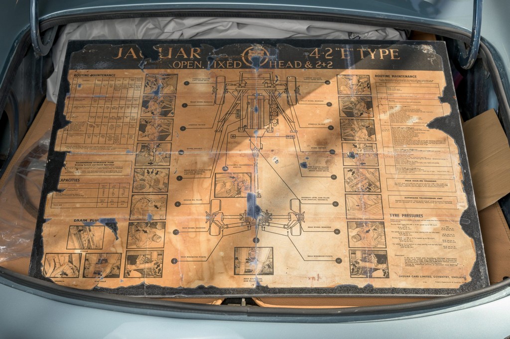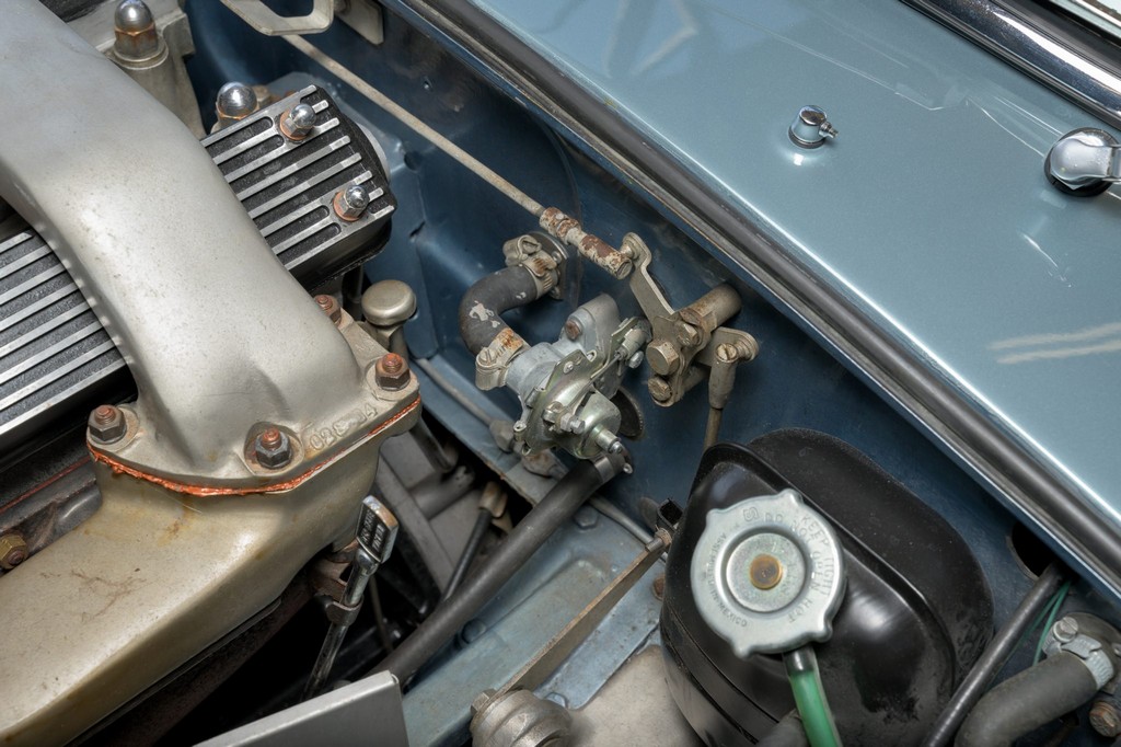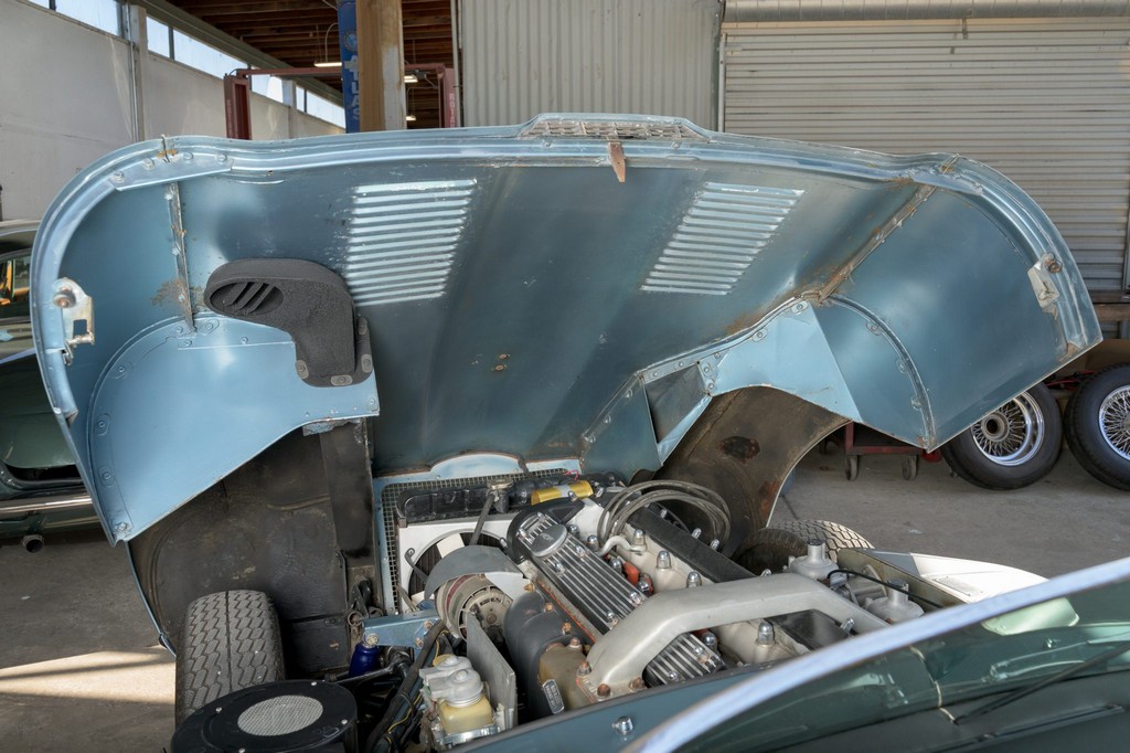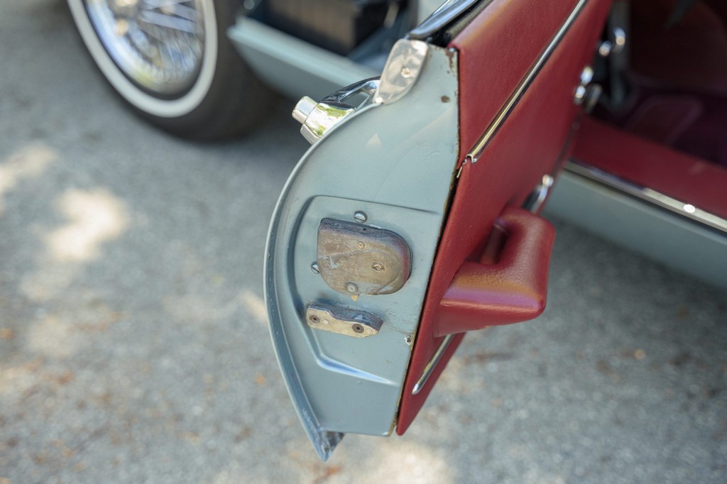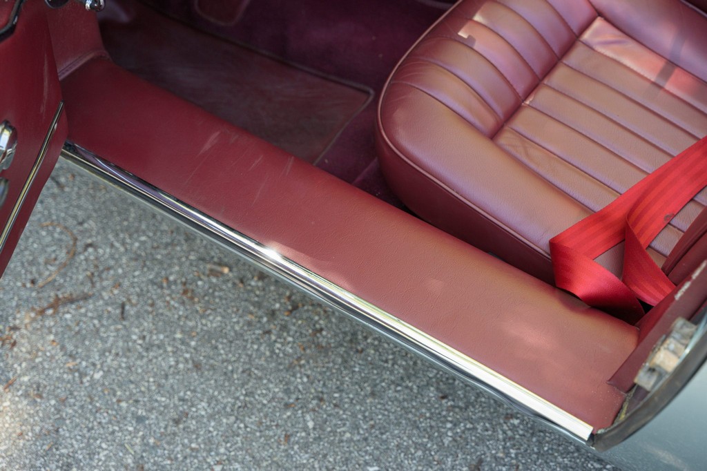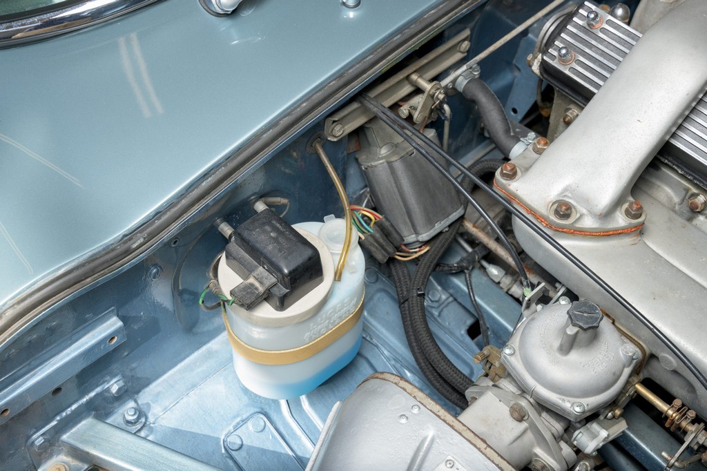 Power comes from the legendary 4.2-liter inline-six, which has been freshened along with the suspension and braking systems to ensure the car drives as beautifully as it looks. A new black vinyl soft top was installed as part of the restoration, completing the open-top experience. Paired with a four-speed manual transmission, the XKE delivers the smooth, torque-rich performance and engaging driving character that defined Jaguar’s golden era.