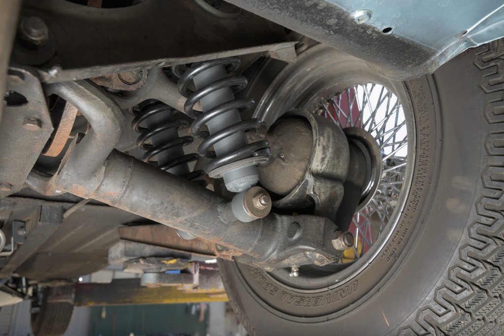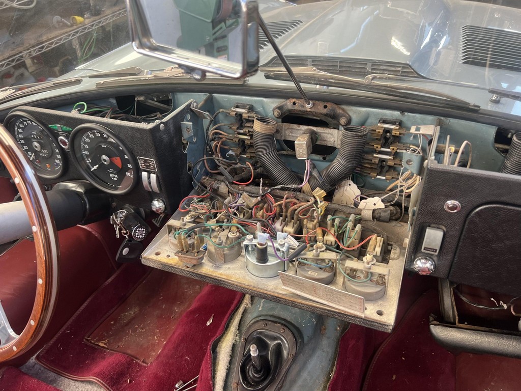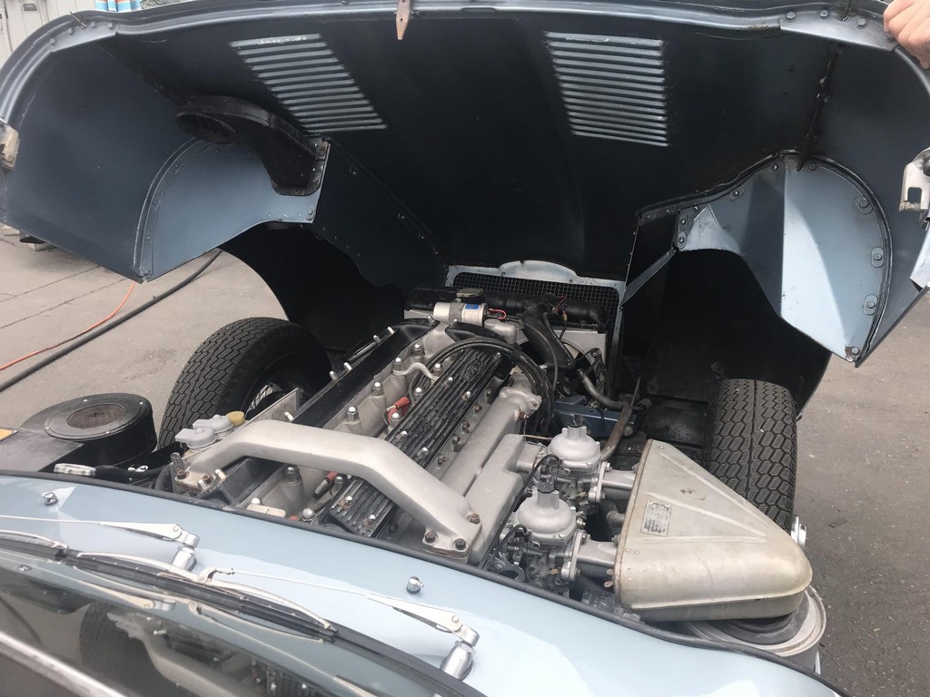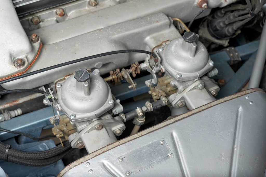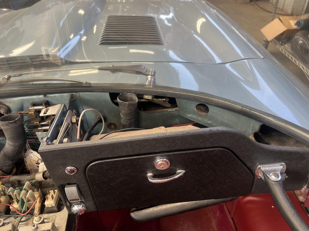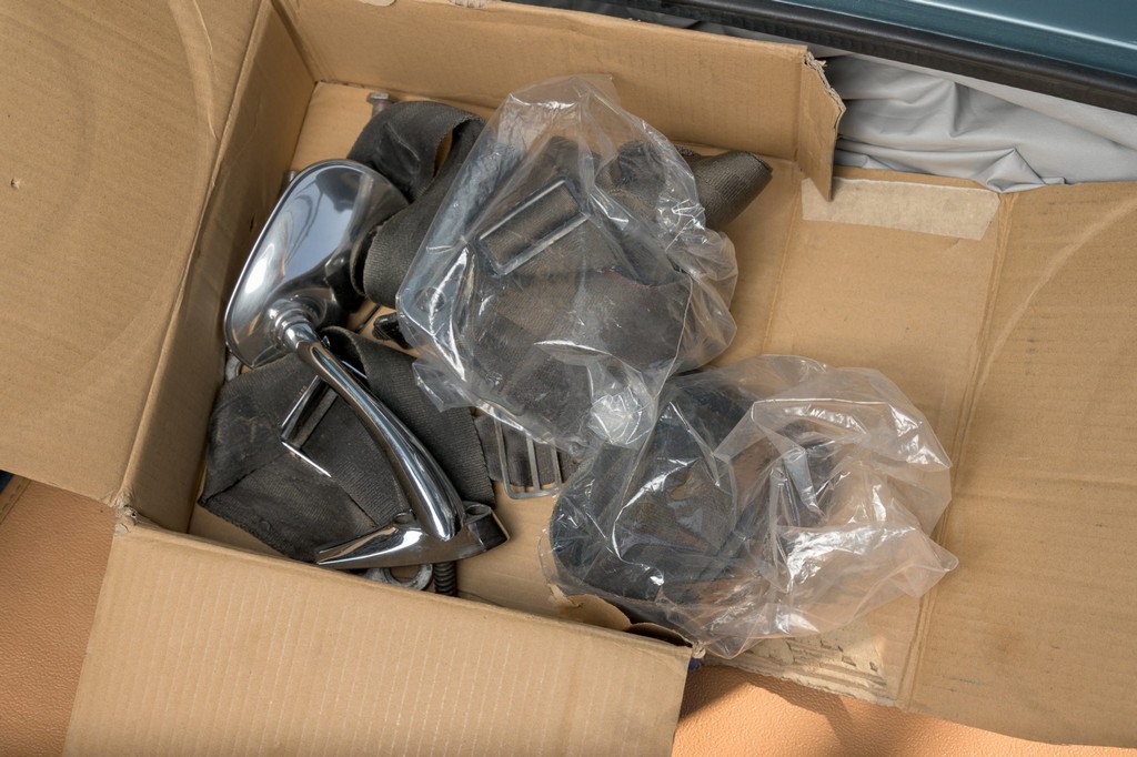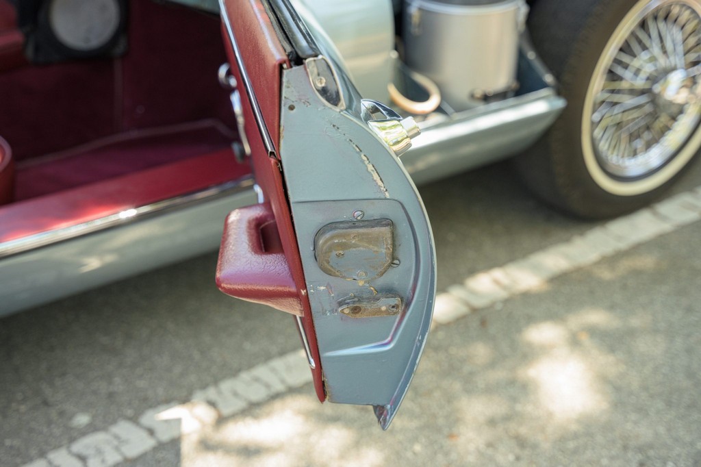 Power comes from the legendary 4.2-liter inline-six, which has been freshened along with the suspension and braking systems to ensure the car drives as beautifully as it looks. A new black vinyl soft top was installed as part of the restoration, completing the open-top experience. Paired with a four-speed manual transmission, the XKE delivers the smooth, torque-rich performance and engaging driving character that defined Jaguar’s golden era.