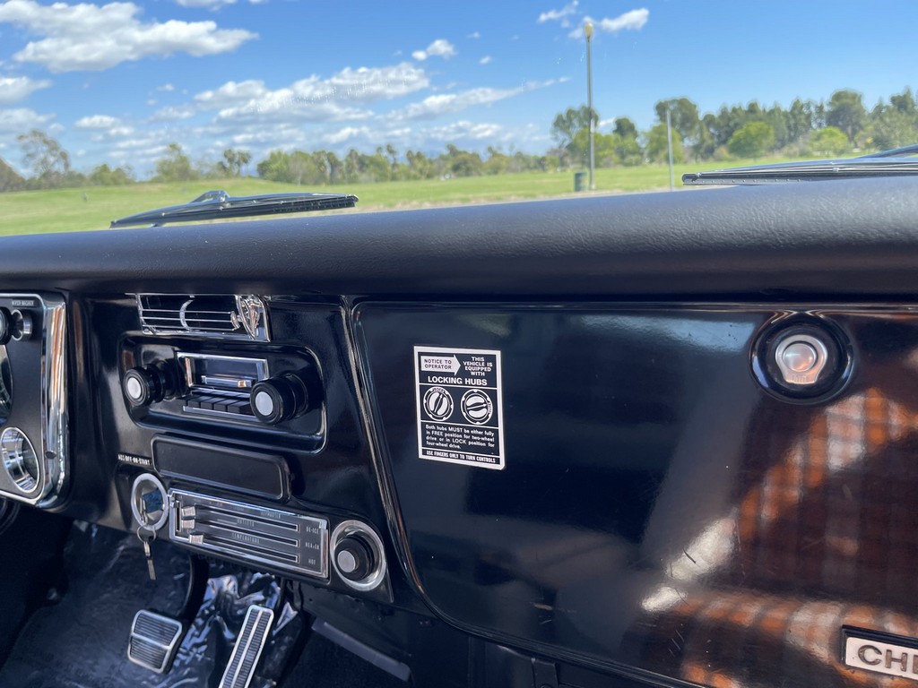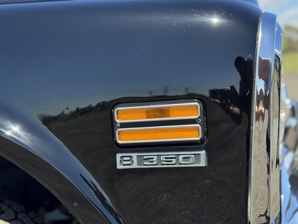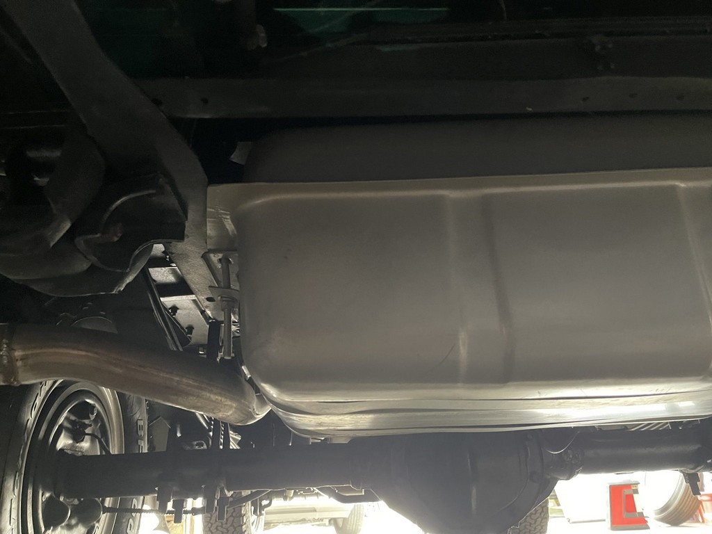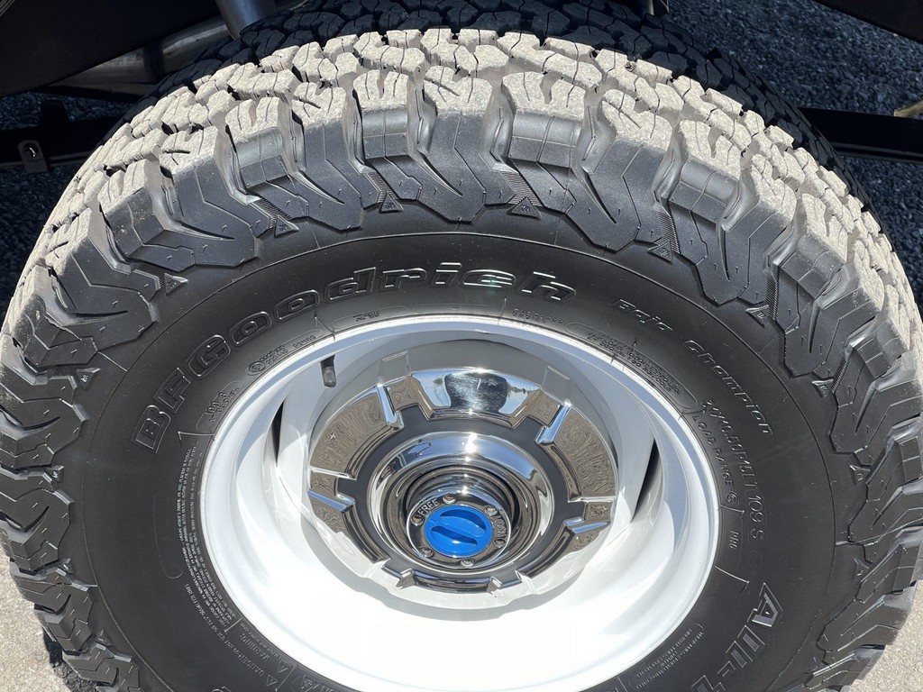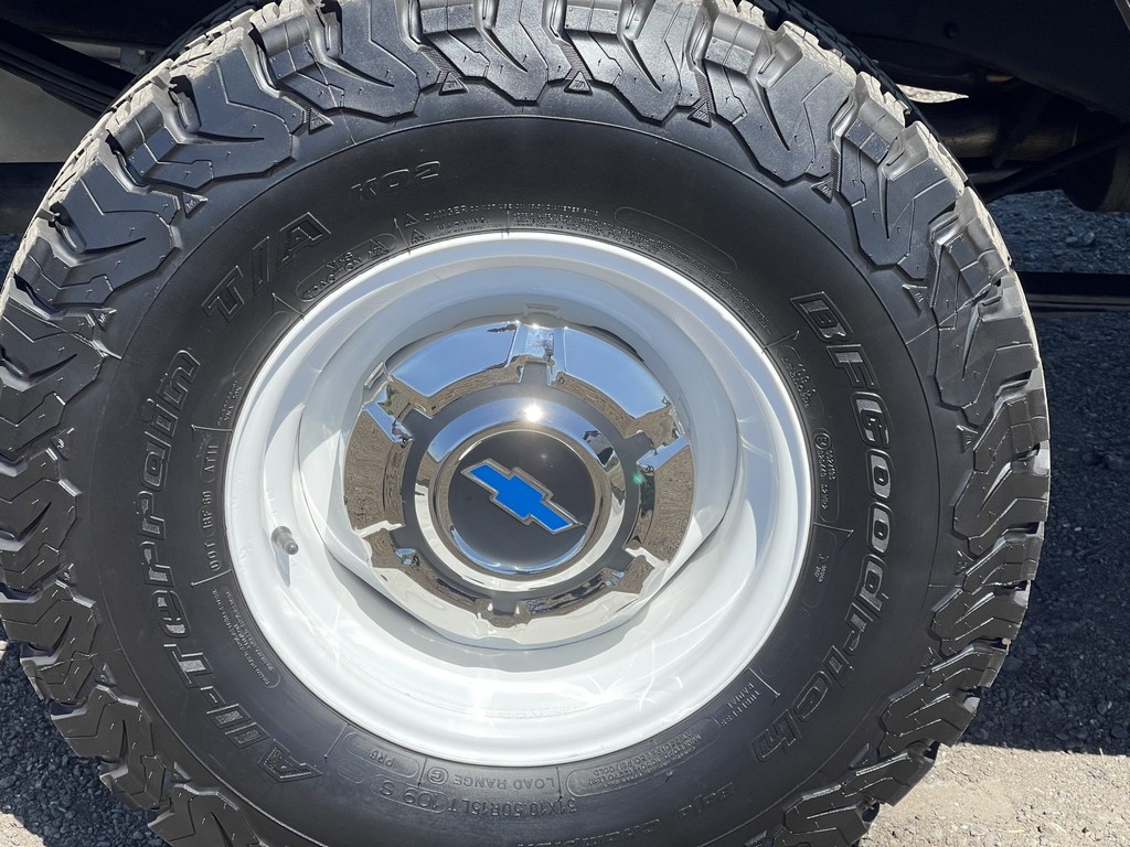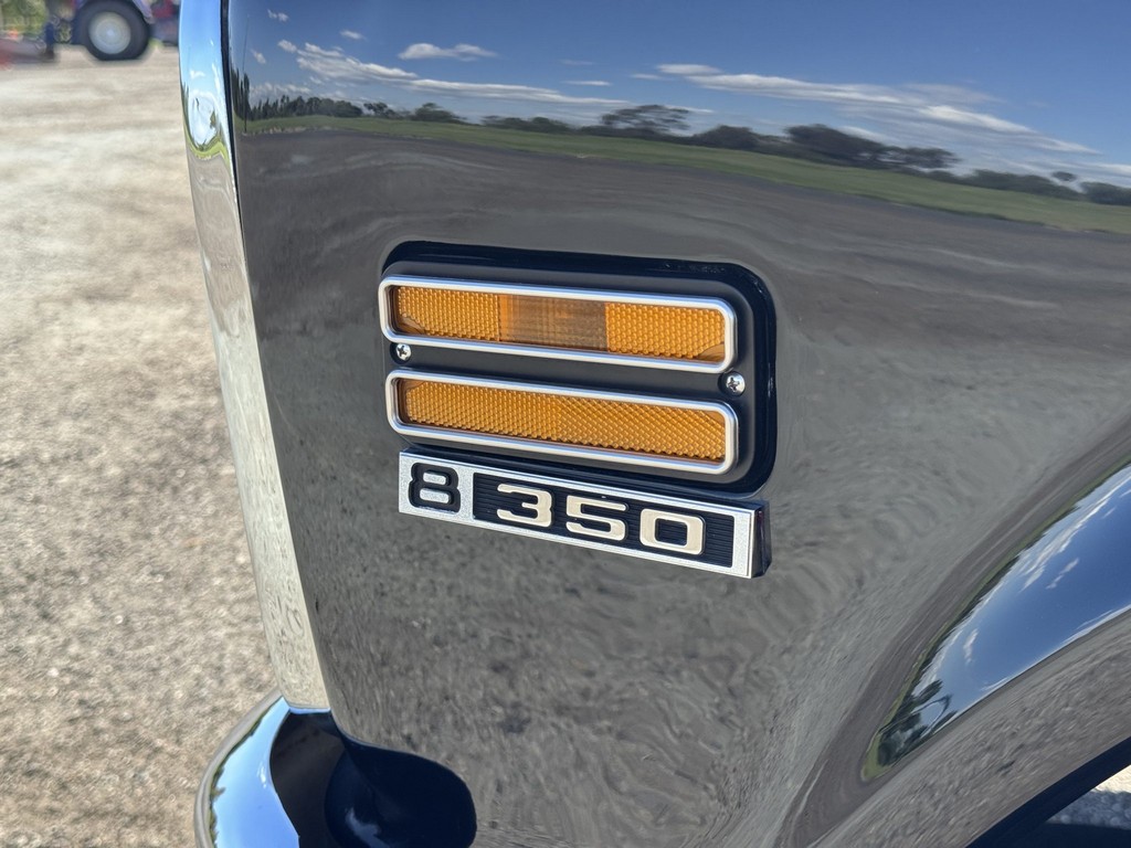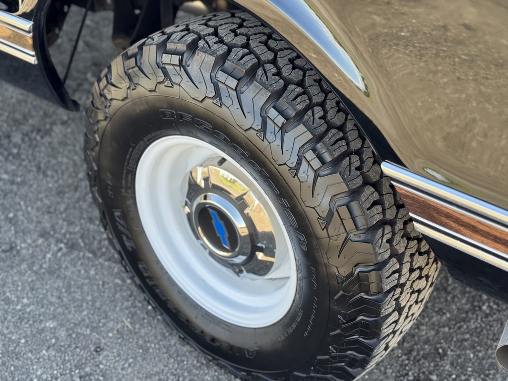 During the restoration, the 350ci V8 engine, transmission, transfer case, suspension, and braking systems were all overhauled. The truck now rides on 15″ white steel wheels wrapped in BFGoodrich All-Terrain T/A K02 tires. Additional features include power steering, manually locking front hubs, and power-assisted front disc brakes for improved drivability.