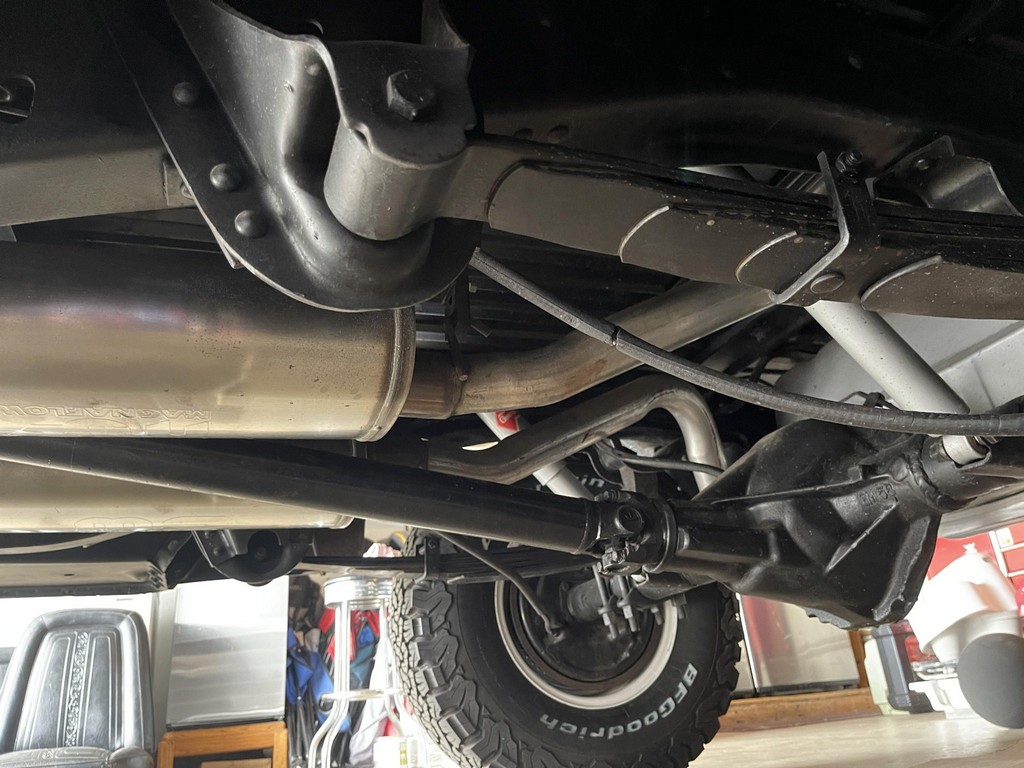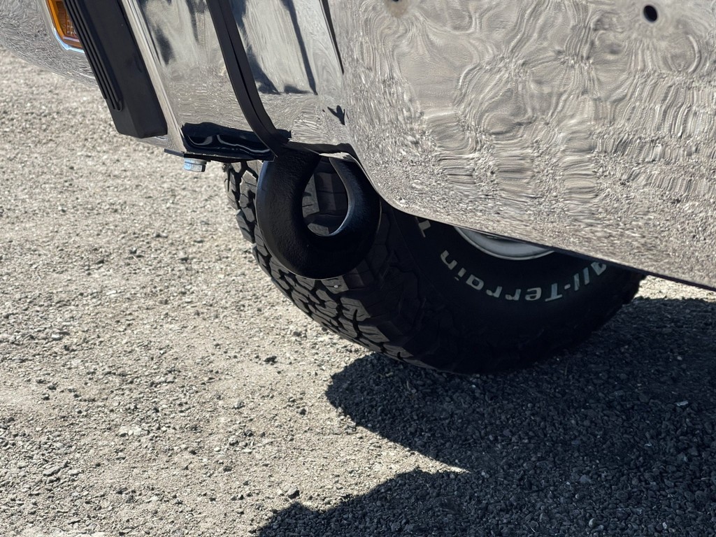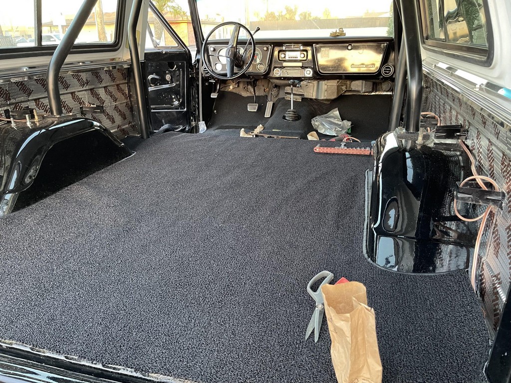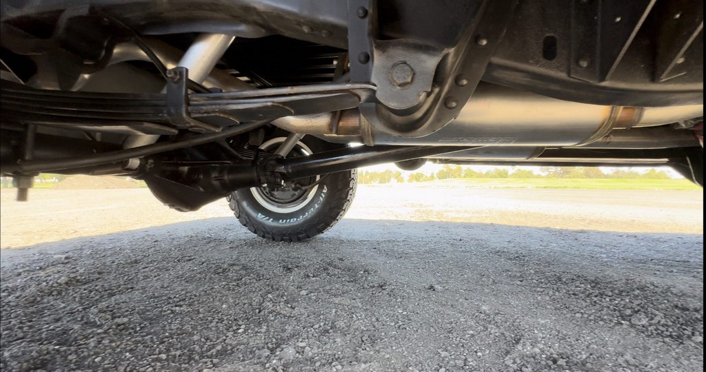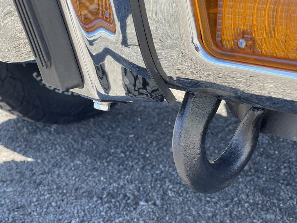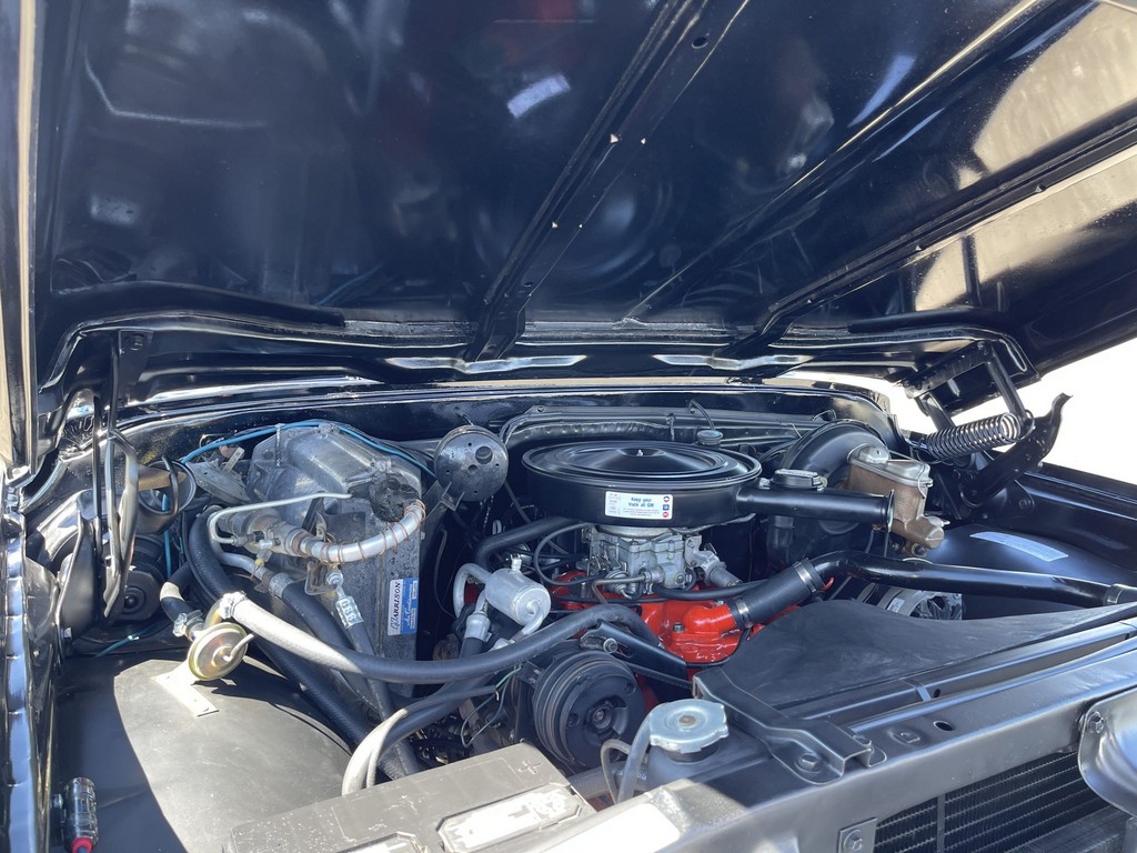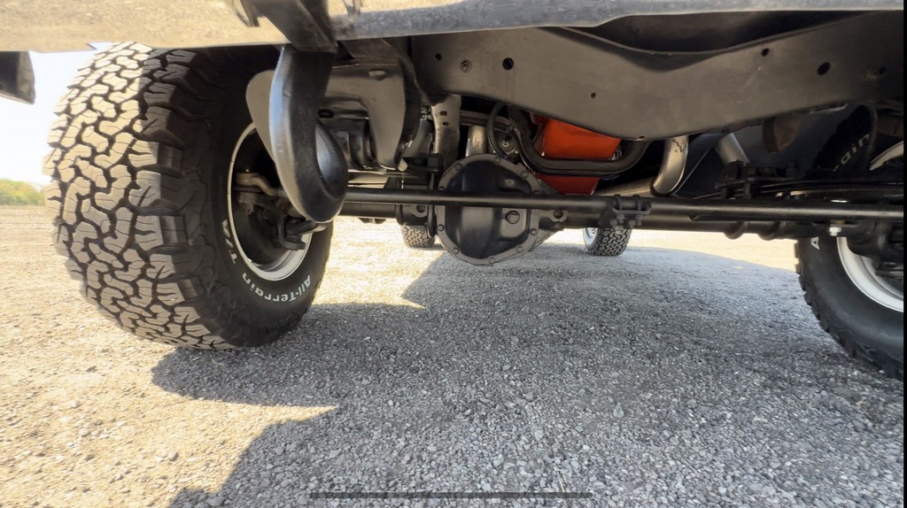 During the restoration, the 350ci V8 engine, transmission, transfer case, suspension, and braking systems were all overhauled. The truck now rides on 15″ white steel wheels wrapped in BFGoodrich All-Terrain T/A K02 tires. Additional features include power steering, manually locking front hubs, and power-assisted front disc brakes for improved drivability.