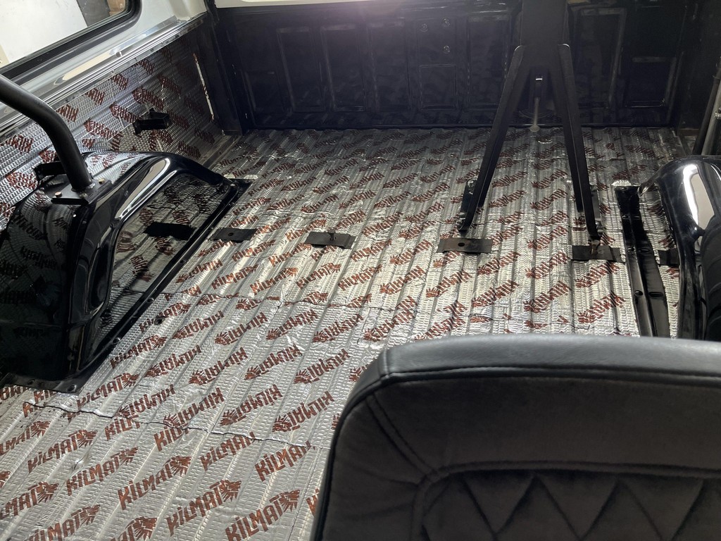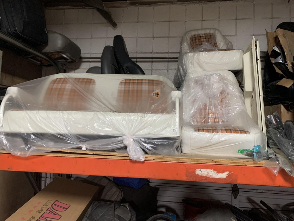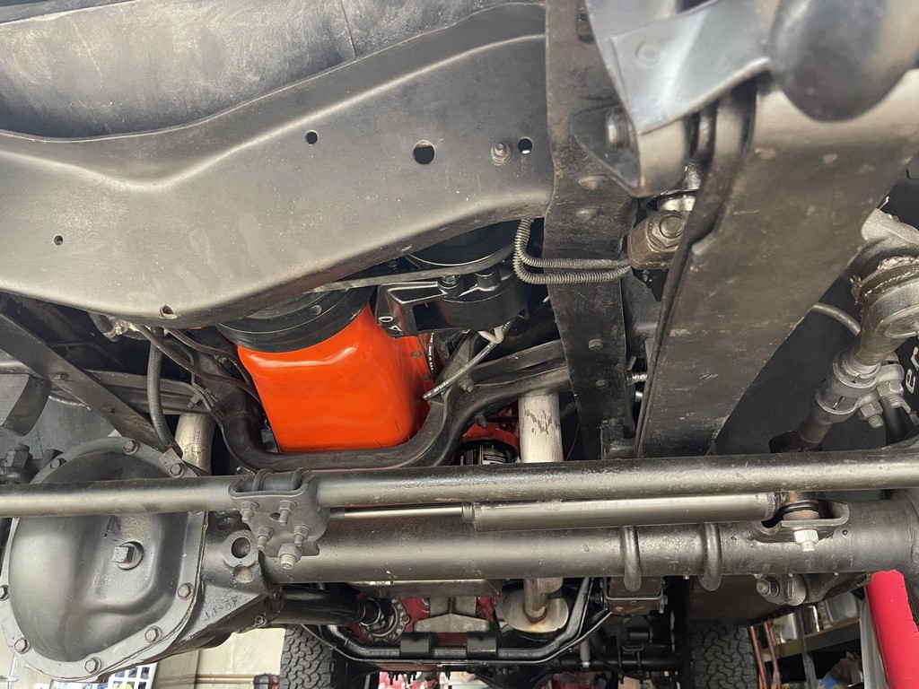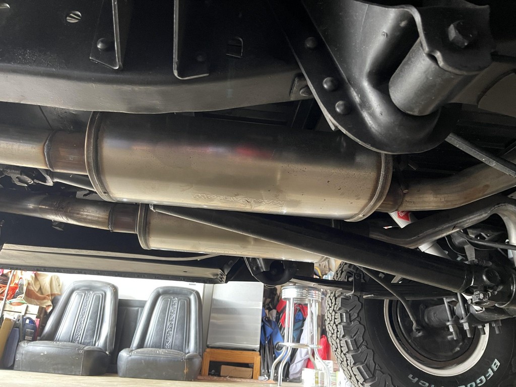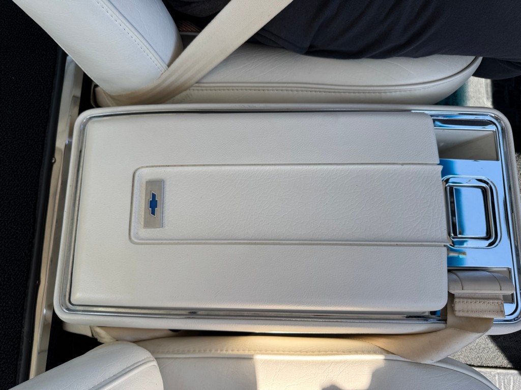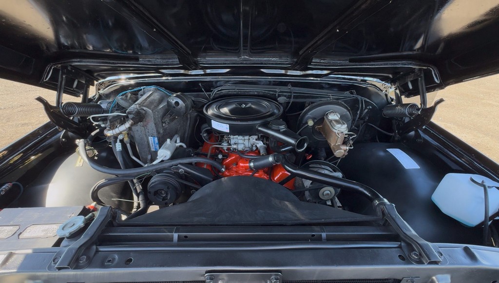 Inside, the cabin was retrimmed in Highlander white and orange plaid upholstery, perfectly capturing the 1970s vibe. Comfort and functionality are enhanced with Kilmat sound-deadening material, a RetroSound Bluetooth-capable radio, a refurbished center console, and a custom audio system with dual rear cargo-area speakers. The air conditioning compressor has been rebuilt, though the system requires servicing.