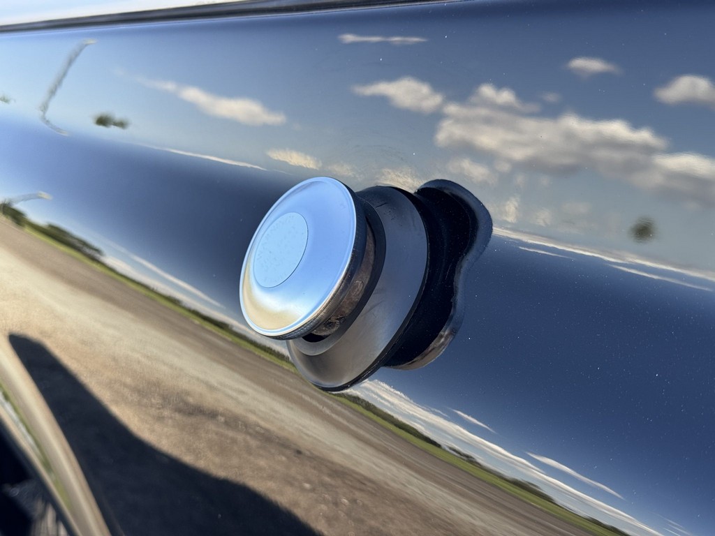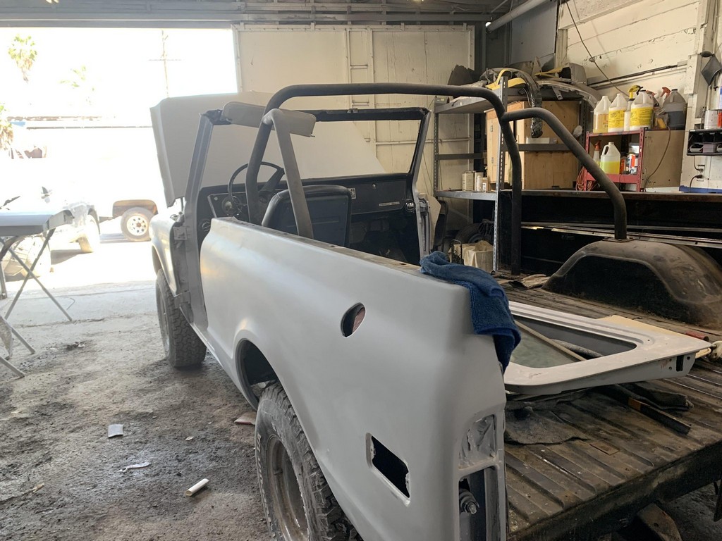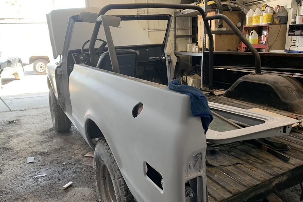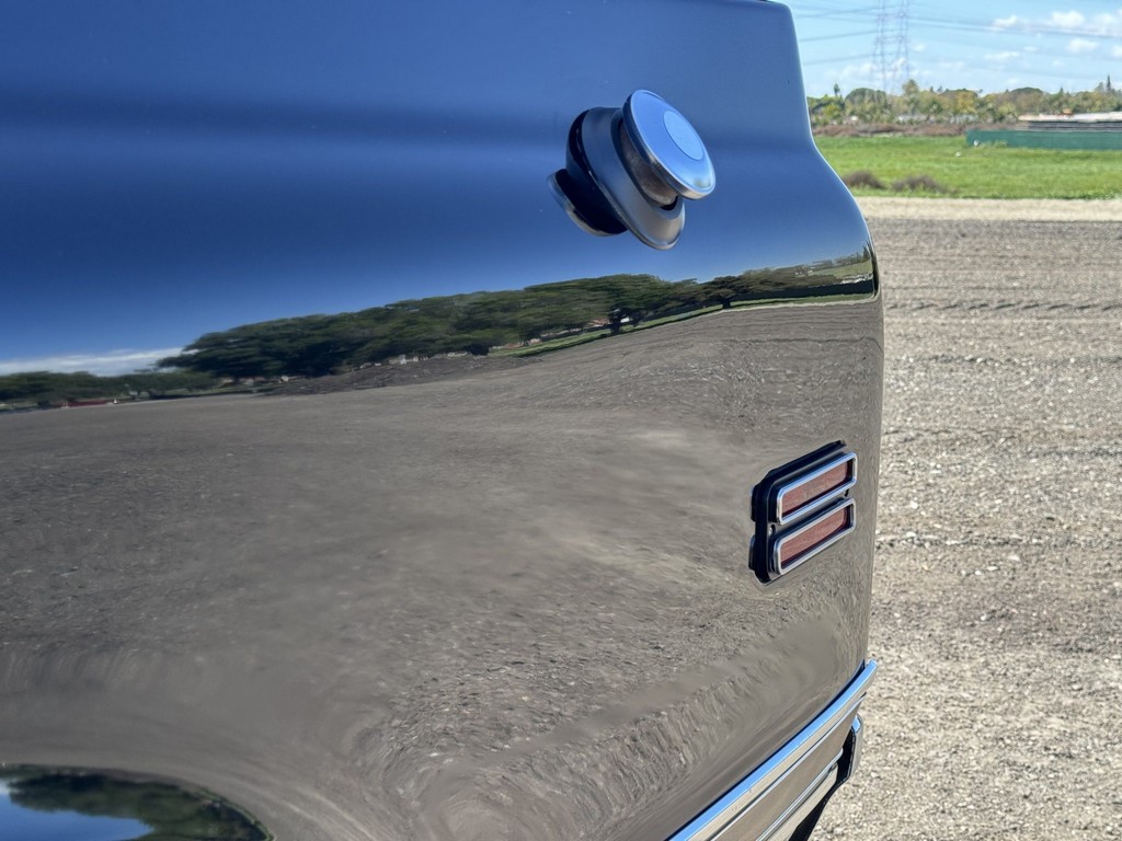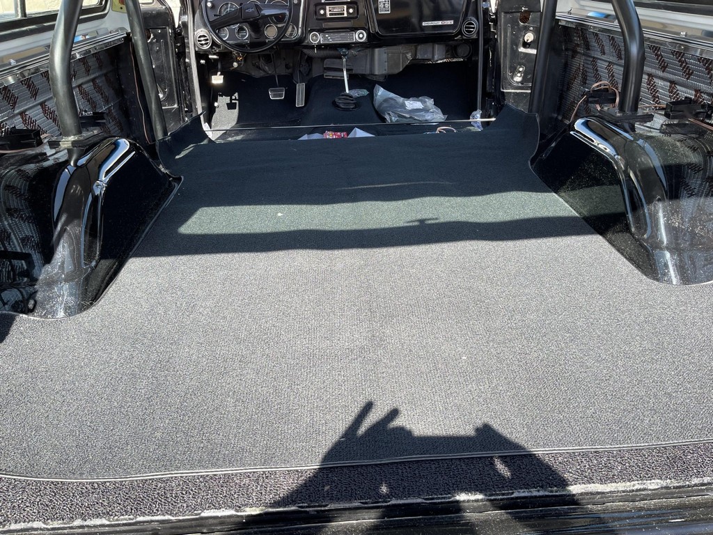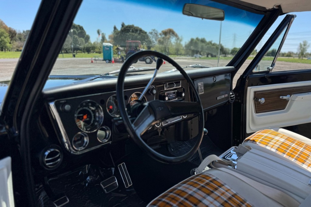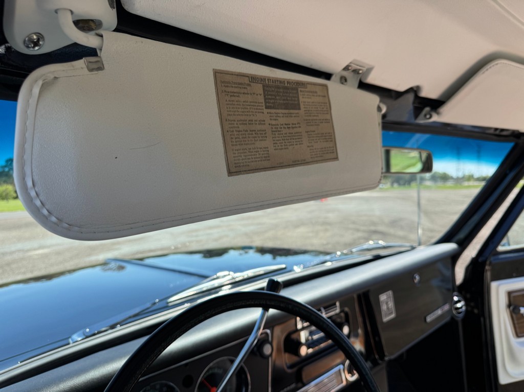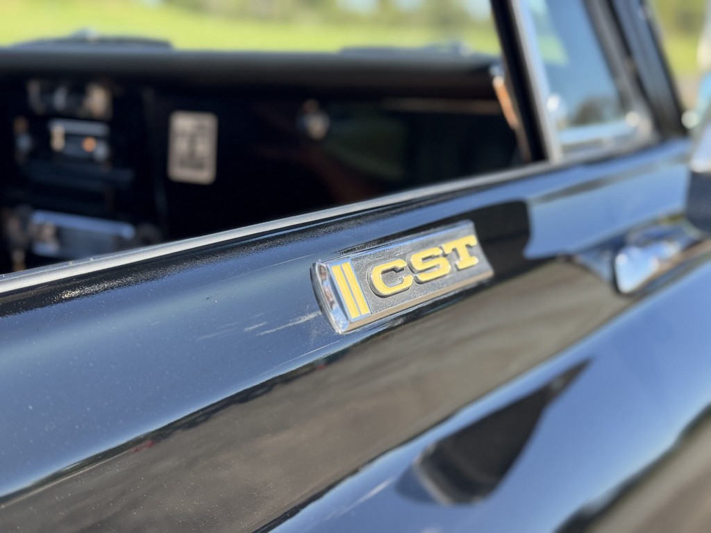 The Blazer’s body was disassembled and refinished in its factory-correct black, following comprehensive sheet metal repairs. A white removable hardtop with custom sliding side windows complements the glossy exterior, while details such as bright trim, CST badging, and chrome bumpers with guards showcase its classic character.