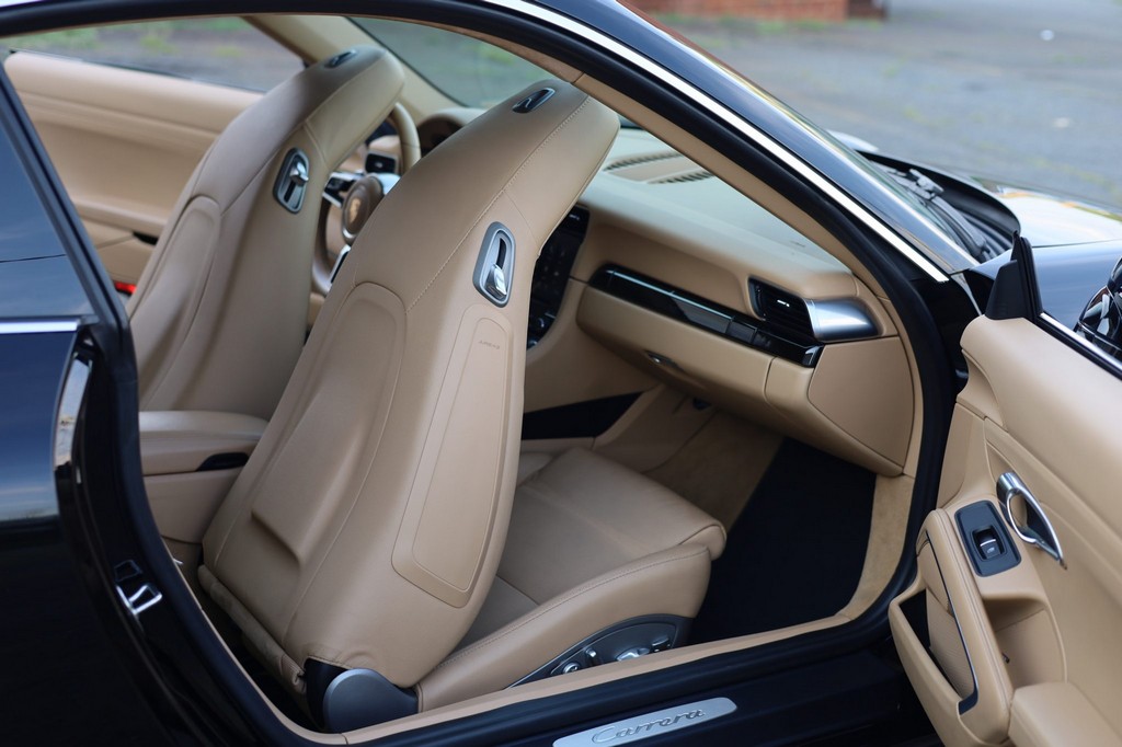 The coupe rides on 19″ Carrera alloy wheels and is equipped with premium package features, including heated and ventilated front seats, Bose sound system, lane change assist, and Power Steering Plus. Maintained with care, this 911 has been responsibly driven, providing both daily usability and thrilling performance.